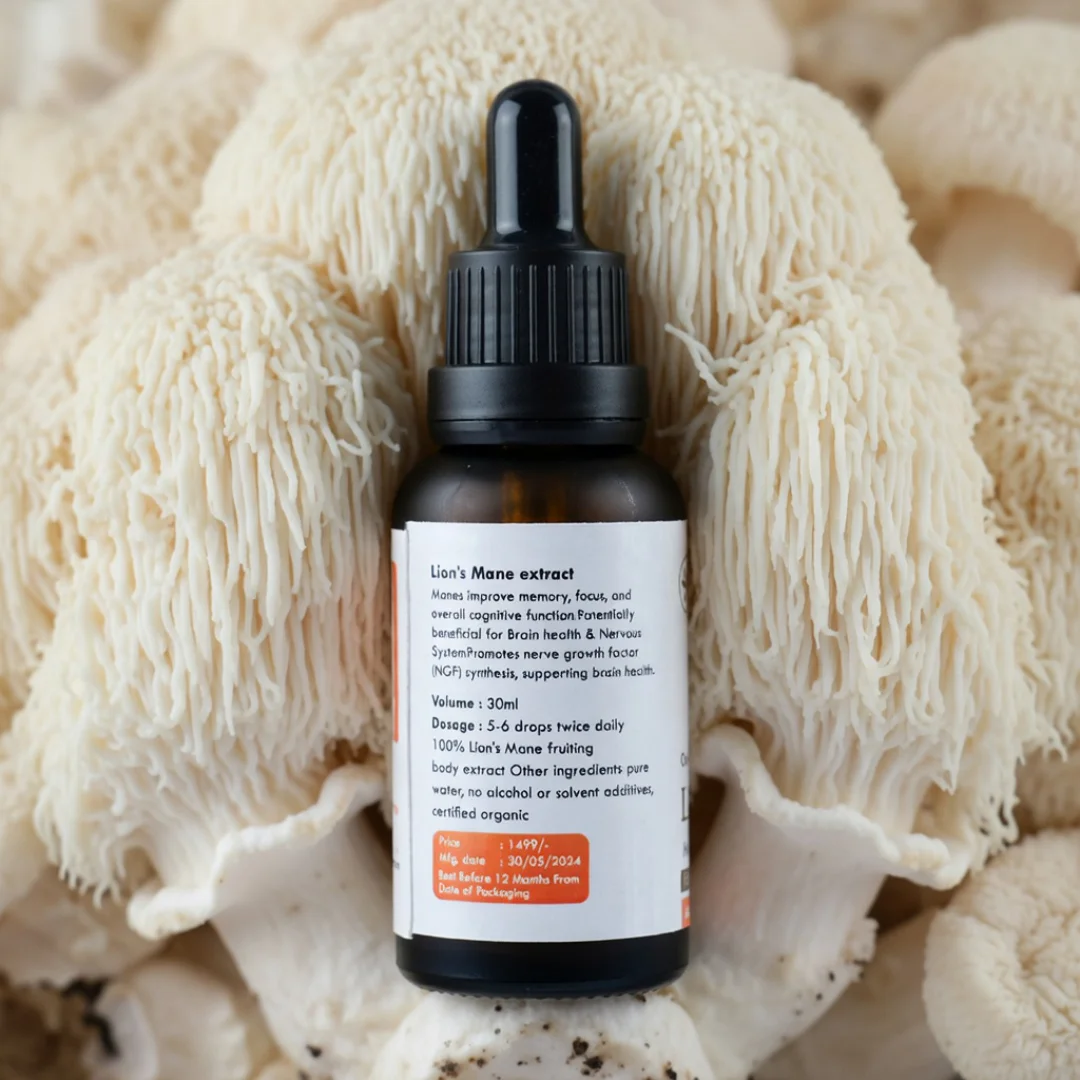 Together, these compounds provide Lion’s Mane with its notable abilities to promote brain health by stimulating nerve growth factor, reduce inflammation and oxidative stress, support the immune system, and aid nervous system recovery. Erinacines(in the mycelium) and Hericenones (in the fruiting bodies) are especially critical for the cognitive and neuroregenerative effects reported in research.This diverse composition makes Lion’s Mane a potent natural supplement for enhancing cognitive function, mood, immunity, and overall well-being