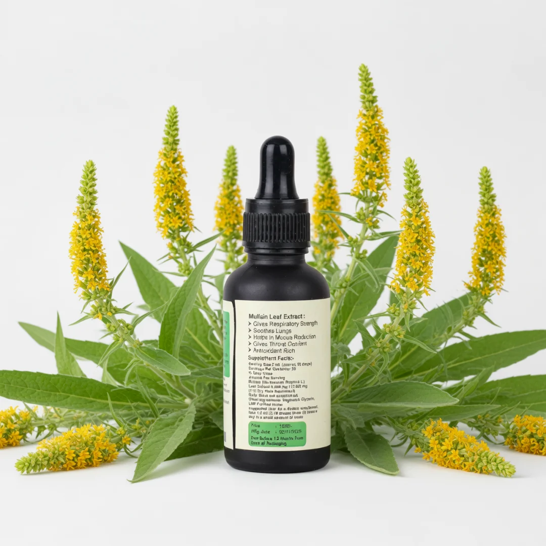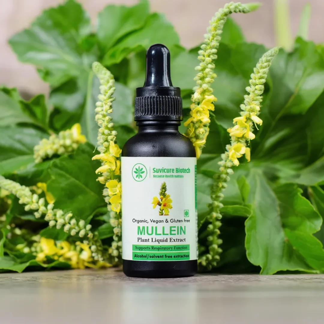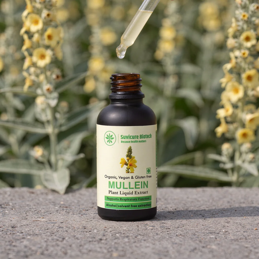 This premium Mullein Leaf Liquid Extract from Suvicure Biotech is formulated as respiratory tonic designed to support clear airways & optimal lung health. Using a high-potency, full-spectrum extraction of organic Verbascum thapsus, this liquid supplement harnesses the plant’s natural mucilage and saponins to soothe irritated tissues and promote healthy mucus clearance.